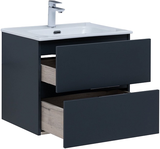 Тумба под раковину Алвита New 60 2 ящика подвесная антрацит матовая