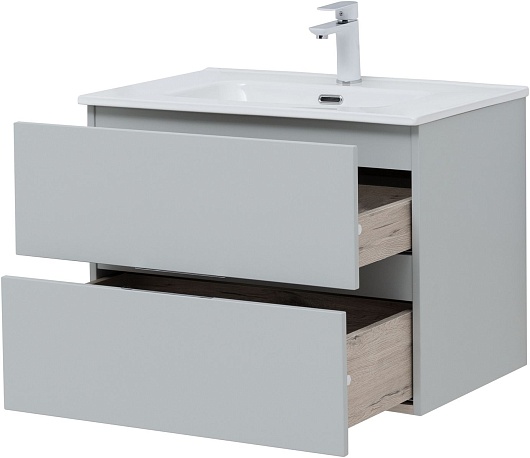 Тумба под раковину Алвита New 70 2 ящика подвесная серая матовая