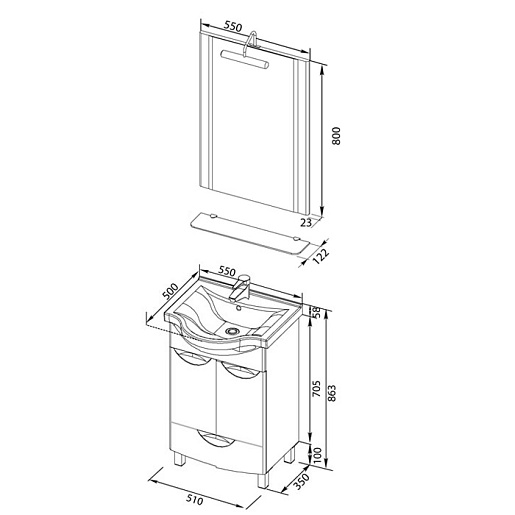 - Тумба с раковиной Асти 55 (арт. 178263) с двумя распашными дверцами и выдвижным ящиком, раковина EVERSON, санфаянс (177617)