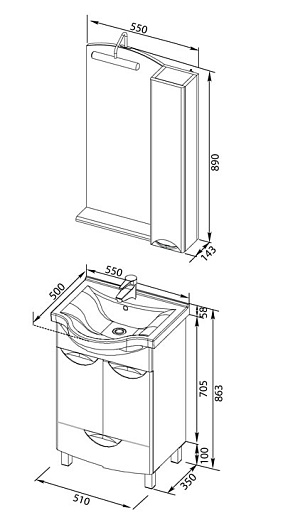 Мебель для ванной «Асти 55 М», арт. 180326
