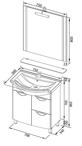 Мебель для ванной «Асти 75», арт. 178431