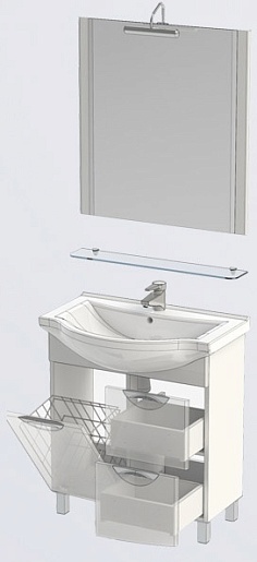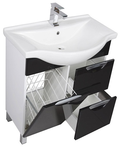 - 178256 тумба под раковину Асти 75 с бельевой корзиной и двумя выдвижными ящиками