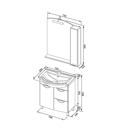 - 180077 Зеркальный шкаф Асти 75 с полкой
