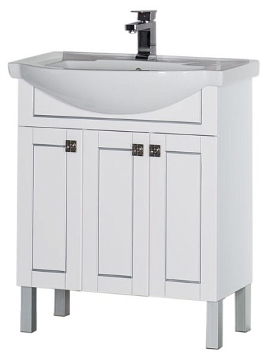 - Тумба: Aquanet Честер 75, цвет белый/патина серебро, 3 распашные дверцы (182629)