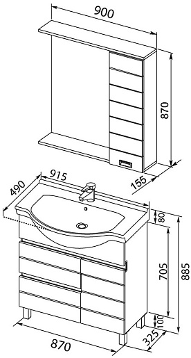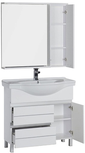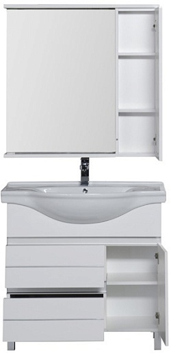 - Тумба с раковиной Aquanet Доминика 90 белая: раковина, дверца распашная - 1 шт., ящик выдвижной - 2 шт.