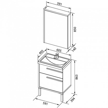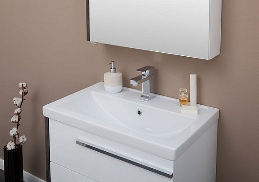 Описание: влагостойкое зеркальное полотно, шкафчик, полочка, светильник приобретается отдельно.Тумба с раковиной Фостер 60