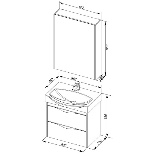- 183052 Тумба под раковину "Франка 65" подвесная: два выдвижных ящика, метабоксы