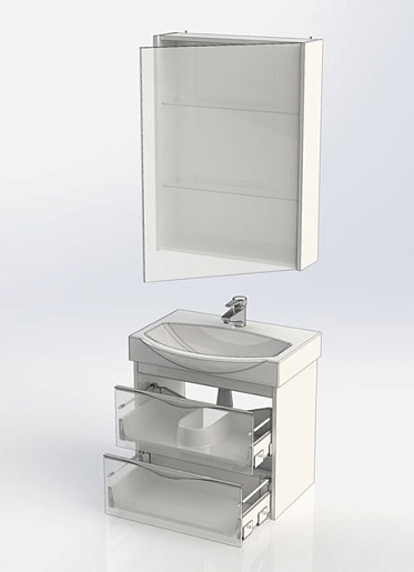 - 183044 Зеркальный шкаф "Франка 65" с распашной дверцей и полками из закаленного стекла