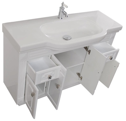 - Тумба: Aquanet Фредерика 125, 4 распашные дверцы, 2 выдвижных ящика, ручки с кристаллами Swarovski (182009)