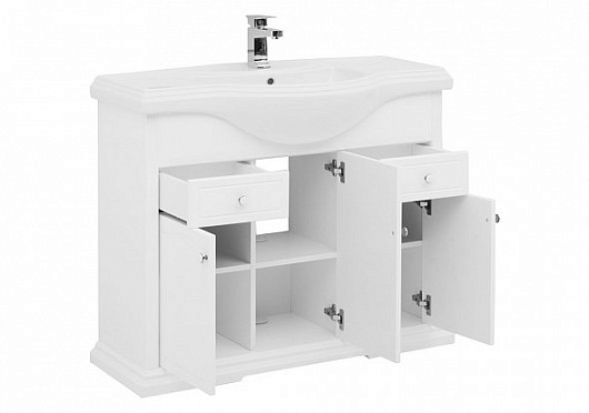 - Тумба с раковиной Aquanet Лагуна 105: раковина Классик 105, выдвижной ящик - 2 шт., распашная дверца - 3 шт., ручка - 5 шт., полка - 3 шт.