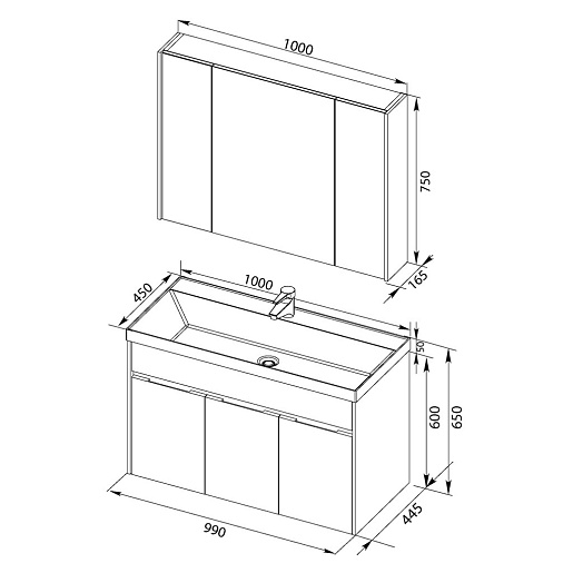 - Зеркало: Aquanet Латина 100, цвет белый, 3 распашные дверцы (179636)