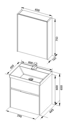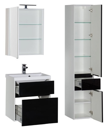 - Тумба: Aquanet Латина 60, цвет белый (фасад черный), 2 выдвижных ящика (179937)