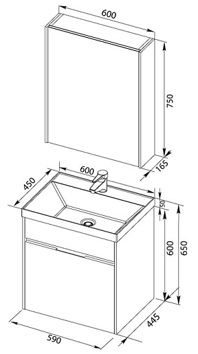 - Тумба: Aquanet Латина 60, цвет белый (фасад черный), 1 выдвижной ящик (179935)