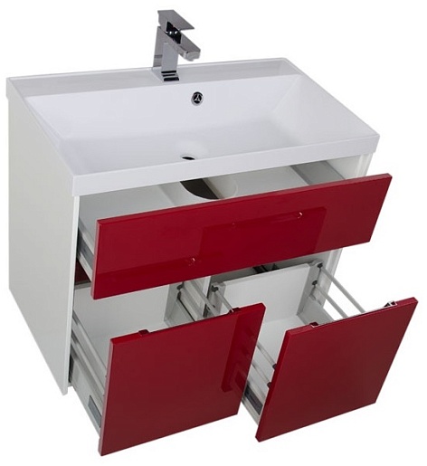 - Тумба: Aquanet Латина 80, цвет белый (фасад бордо), 3 выдвижных ящика (179930)