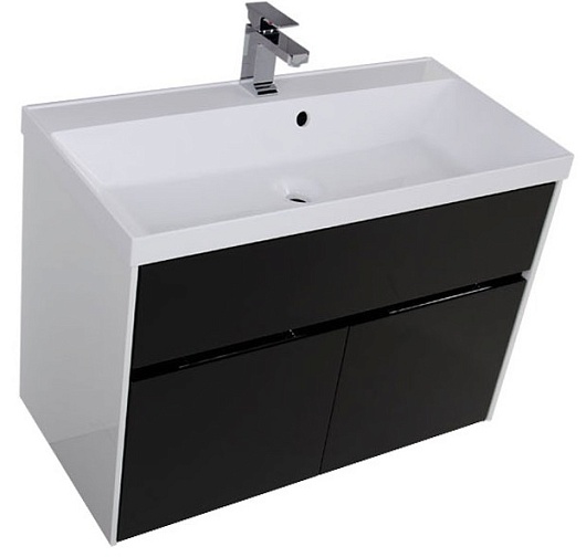 - Тумба: Aquanet Латина 90, цвет белый (фасад черный), 3 выдвижных ящика (179931)