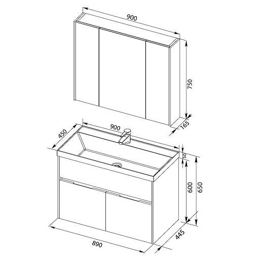 - Зеркало: Aquanet Латина 90, цвет белый, 3 распашные дверцы (179605)