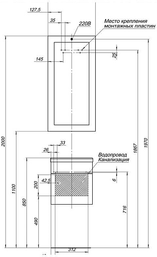 - Размеры (ШхГхВ): 450x36х900 мм.