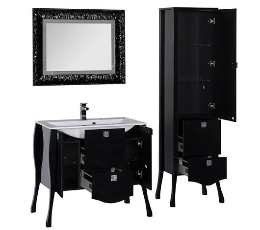 - Тумба с раковиной Aquanet Мадонна 90 черная с кристаллами Swarovski: раковина, распашная дверца - 2 шт., выдвижной ящик - 2 шт., ручка с кристаллами Swarovski - 4 шт., механизм доводчика