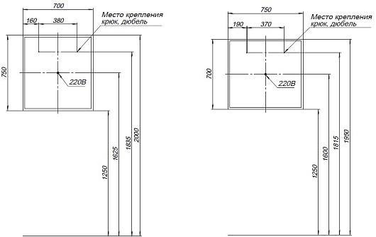 - Размер корпуса (ШВГ): 700x750x20 мм.