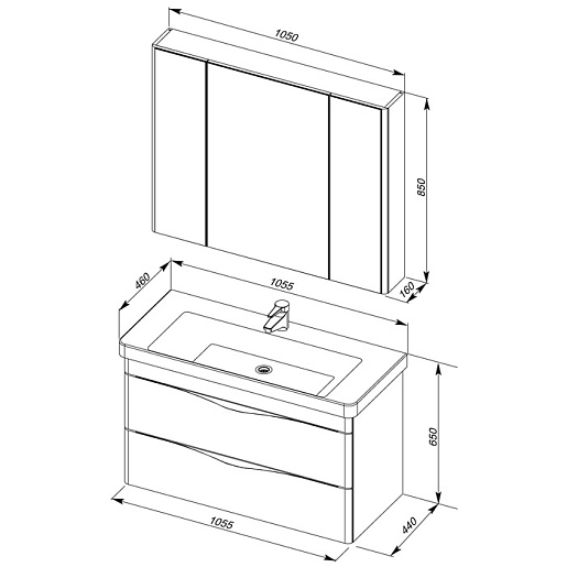 - 183083 Тумба под раковину "Орлеан 105" подвесная, с двумя выдвижными ящиками, метабоксы