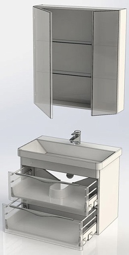 - 183077 Зеркальный шкаф "Орлеан 80" с распашными дверцами, полками из закаленного стекла
