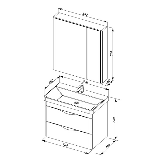 - 183082 Тумба под раковину "Орлеан 80" подвесная, с двумя выдвижными ящиками, метабоксы
