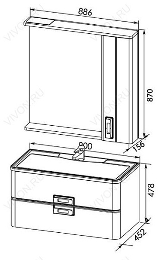- Тумба с раковиной Aquanet Паллада 90 белая: раковина-столешница, выдвижной ящик - 2 шт., ручка - 2 шт.