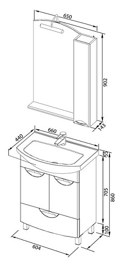 - тумба под раковину Парма 65 с двумя распашными дверцами и выдвижным ящиком