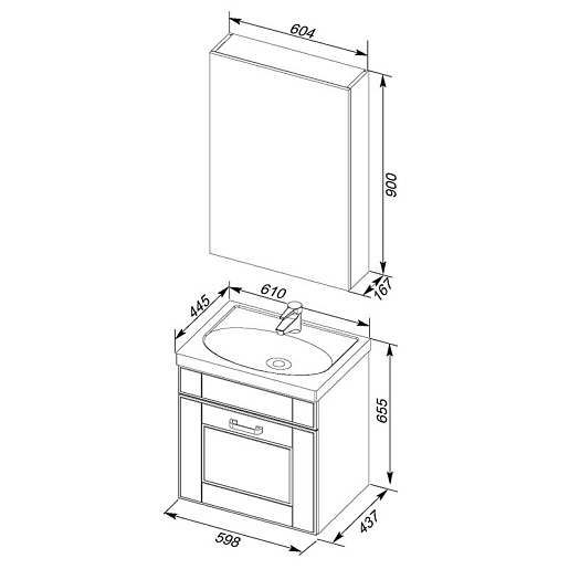 Зеркальный шкаф "Рондо 60" камерино