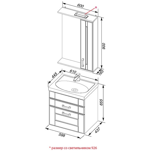 Раковина-столешница: Калипсо 600, с обрамлением (185476)