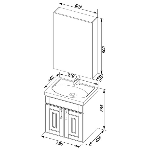 Aquanet Мебель для ванной "Рондо 60" белый (дверцы) камерино