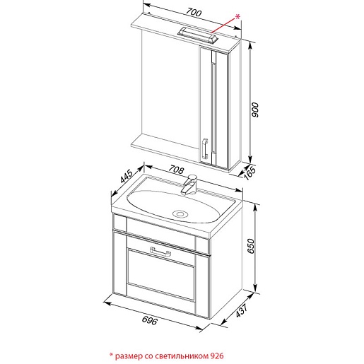 Раковина-столешница: Калипсо 700, с обрамлением (00185343)