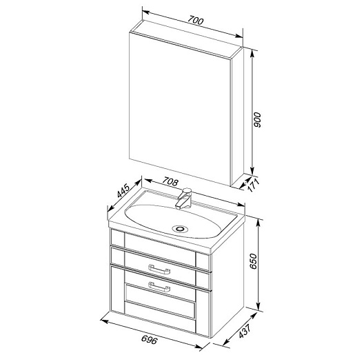 Тумба под раковину Рондо 70 белый (2 ящика)