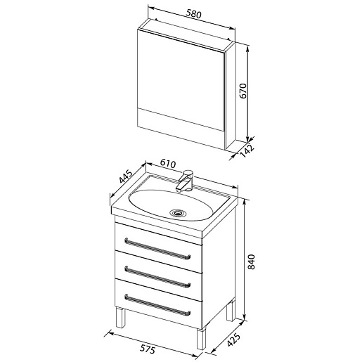 Тумба под раковину Сиена 60 напольная, ящики, черная