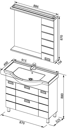 Размеры ШxГxВ: 910х490х880 мм