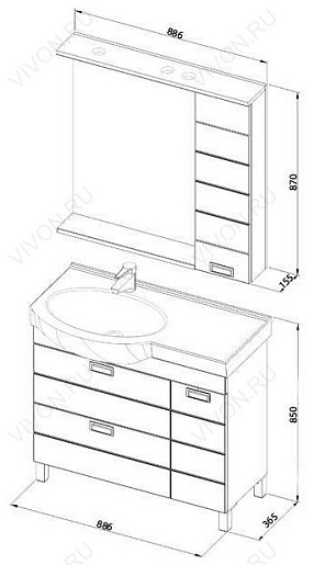- Тумба под раковину Aquanet Сити 90 L венге: раковина, выдвижной ящик - 2 шт., распашная дверца - 1 шт., ручка - 3 шт.