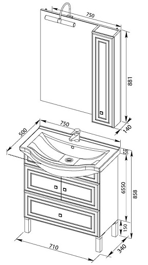 - 181500 Тумба под раковину Стайл 75 с двумя распашными дверцами и выдвижным ящиком