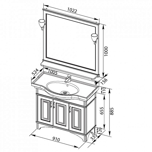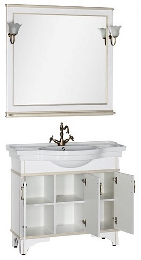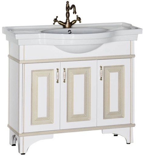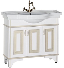- Тумба: Aquanet Валенса 100, цвет белый, краколет/золото, 3 распашные дверцы (182653)