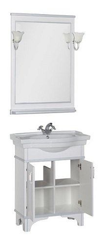 - Тумба: Aquanet Валенса 80, цвет белый краколет/серебро, 2 распашные дверцы (180143)