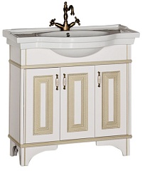 - Тумба: Aquanet Валенса 90, цвет белый краколет/золото, 3 распашные дверцы (182657)