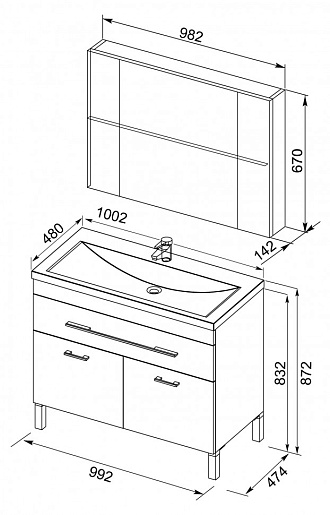 - Раковина: Нота-100, литьевой мрамор (204096)