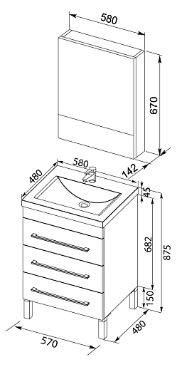 Тумба под раковину Верона 58 напольная, ящики, черная