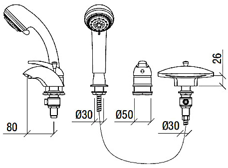 - установка на борт ванны на 3 отверстия