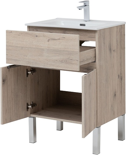 Aquanet Тумба под раковину Алвита New 60 1 ящик 2 дверцы дуб веллингтон белый