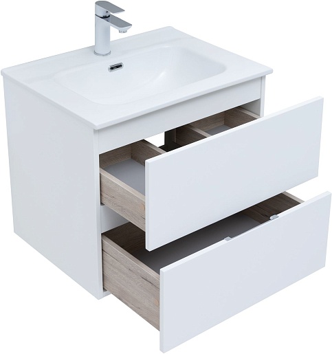 Aquanet Тумба под раковину Алвита New 60 2 ящика подвесная белая матовая