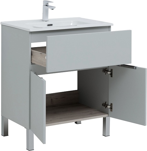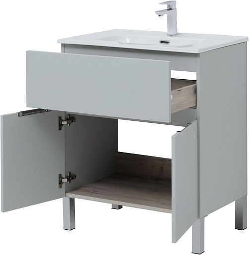 Aquanet Тумба под раковину Алвита New 70 1 ящик 2 дверцы серая матовая