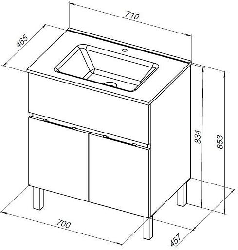 Тумба под раковину Aquanet Алвита New 70 1 ящик 2 дверцы - арт. 303899.