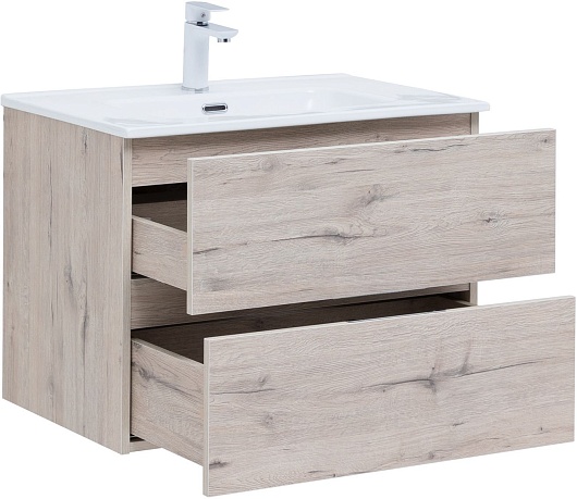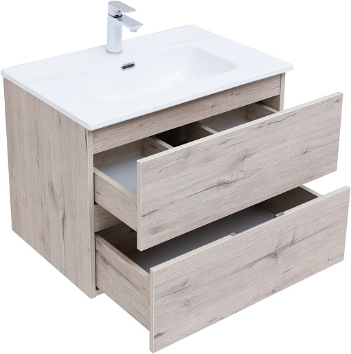 Aquanet Тумба под раковину Алвита New 70 2 ящика подвесная дуб веллингтон белый