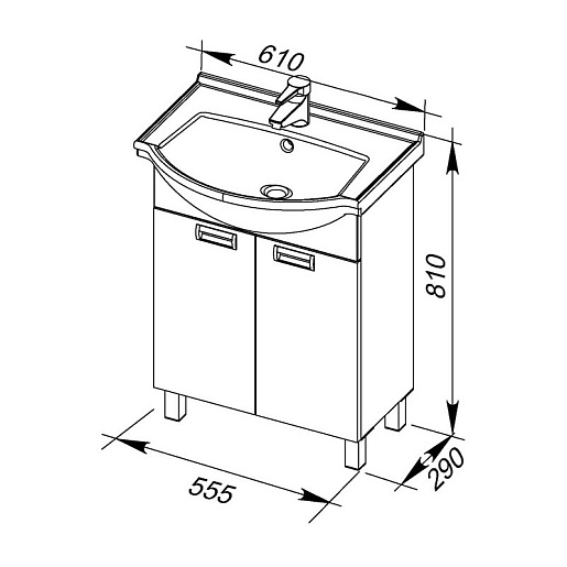 Тумба: Aquanet Адель 60, цвет черный, 2 распашных дверцы (185769)