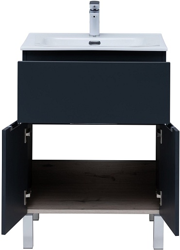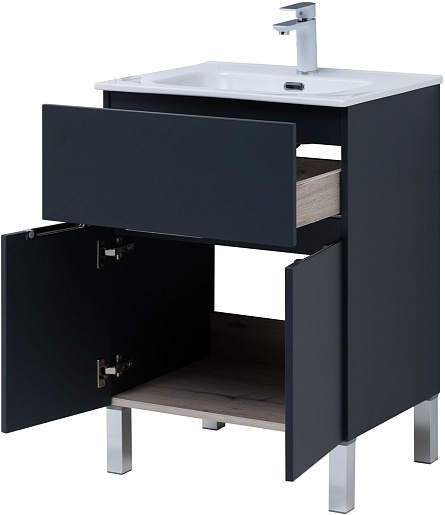 Aquanet Тумба с раковиной Алвита New 60 1 ящик 2 дверцы антрацит матовая